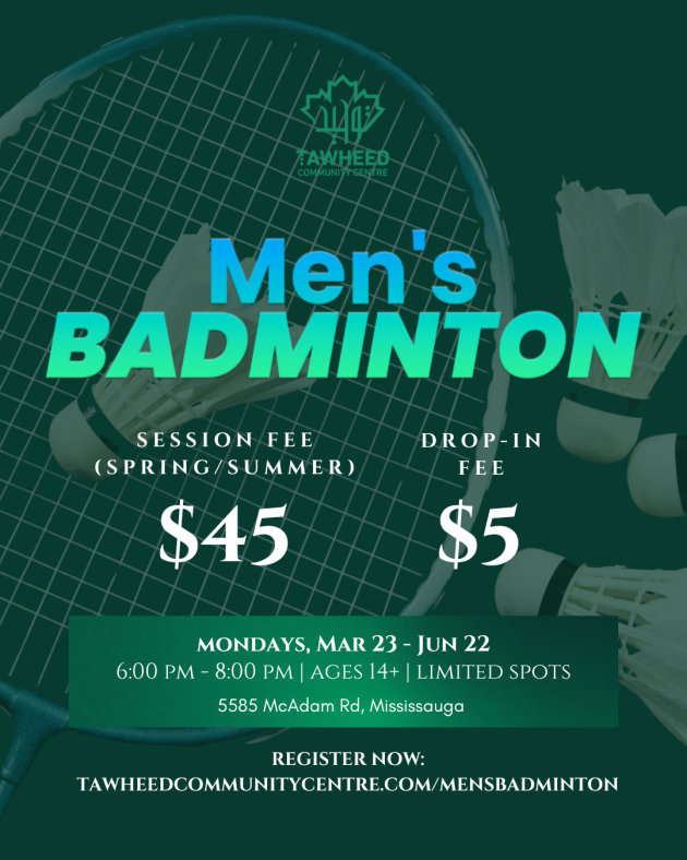 The Tawheed Community Centre is a non-profit community centre that will put Islamic values into action. We aim to provide support and resources to enrich the lives of our community through cultural, social, spiritual, and recreational experiences.